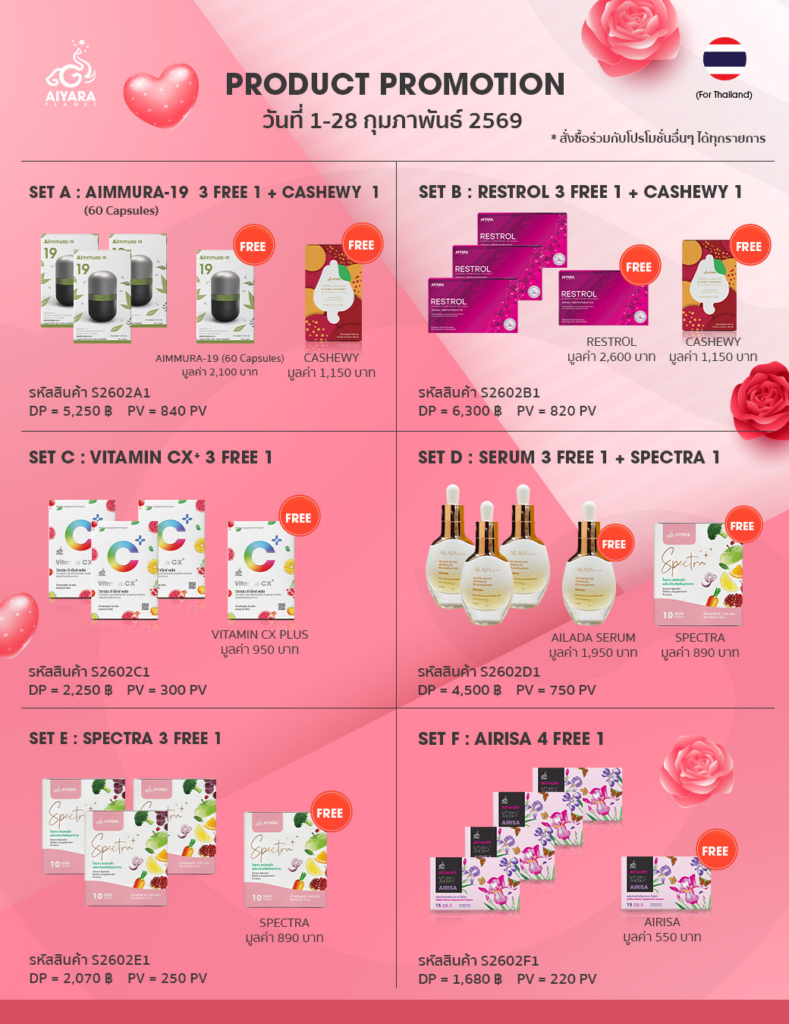 จากราคาปกติ 6,300 บาท ชุดโปร สมาชิก เหลือ 3,500 บาท – Aimmura-19 2 free 1 (60 CAP.) 09/01/2569 – 31/01/2569 เท่านั้น.